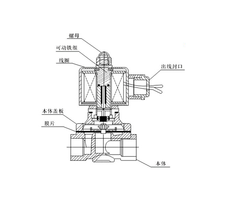 通電時,電磁線圈產(chǎn)生電磁力把關閉件從閥座上提起,閥門打開;斷電時,電磁力消失,彈簧把關閉件壓在閥座上,閥門關閉。